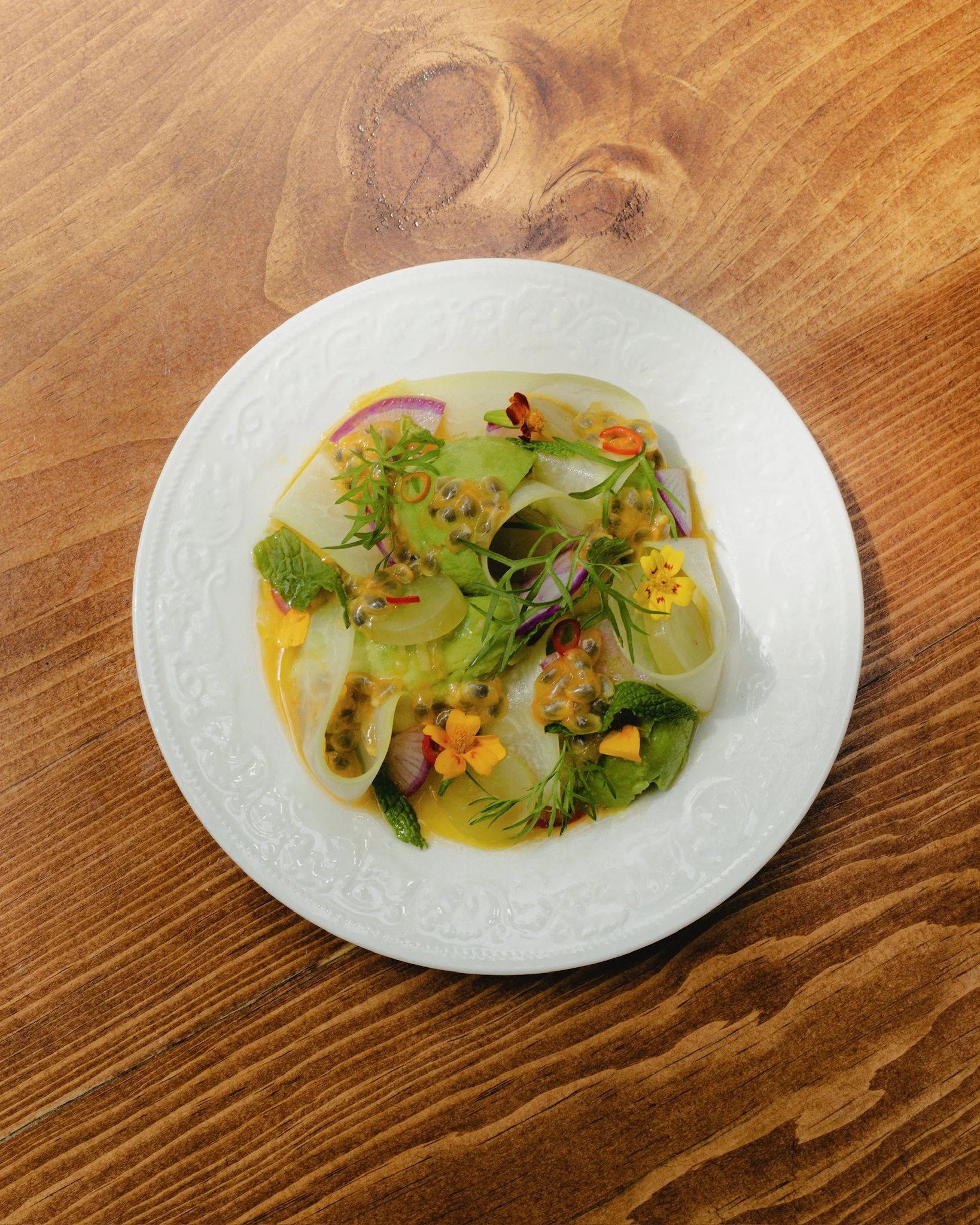 The restaurant aims to feel that way: like you’re dining among instant friends, laughing as much as you’re eating. The cuisine is rustic and lovingly-made, balanced, but never boring. It falls somewhere between French, Italian, and, as the chef loves to insist, “Californian” — reflecting the myriad possible directions of a set menu that changes every week. We might seat you with strangers, or squeeze you onto a bench alongside all the friends you brought. Good company nourishes as well as good food does.